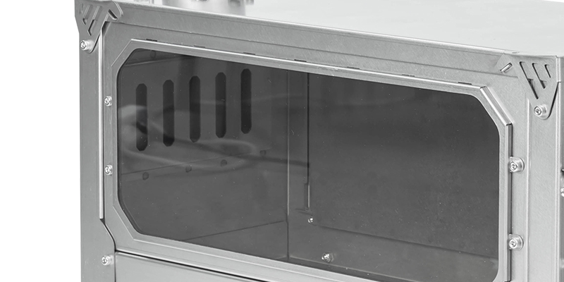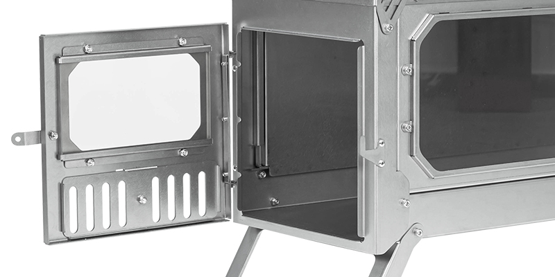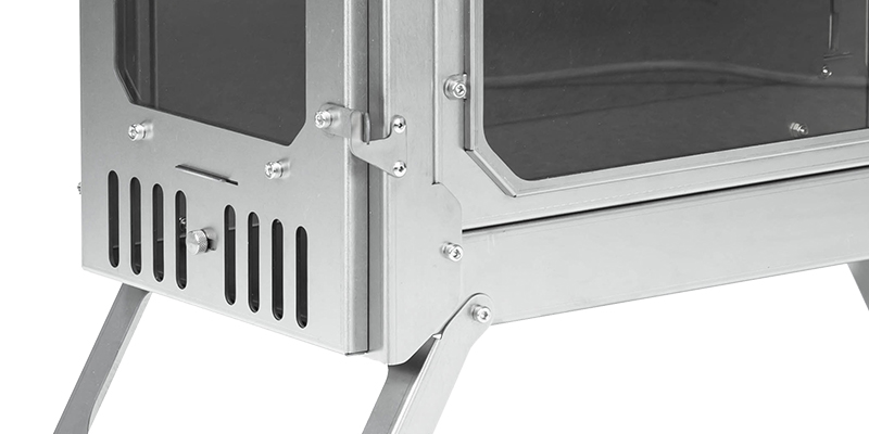 T-Brick Ultra Faltbarer Holzofen hat eine Tür mit verschiebbarem Lufteinlass und einem achteckigen Glas, so dass Sie die Brennrate fein einstellen können.