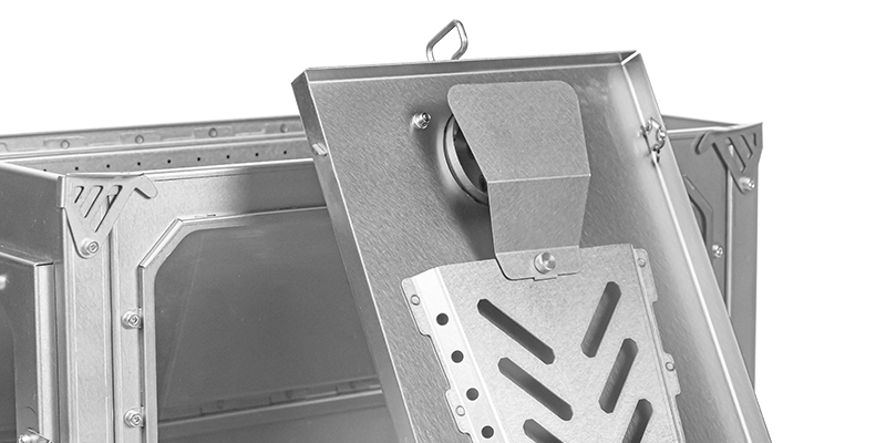 Die Luft gelangt durch die seitliche Lufteinlassplatte in den Ofen, die den Rauch zulassen kann, der durch die